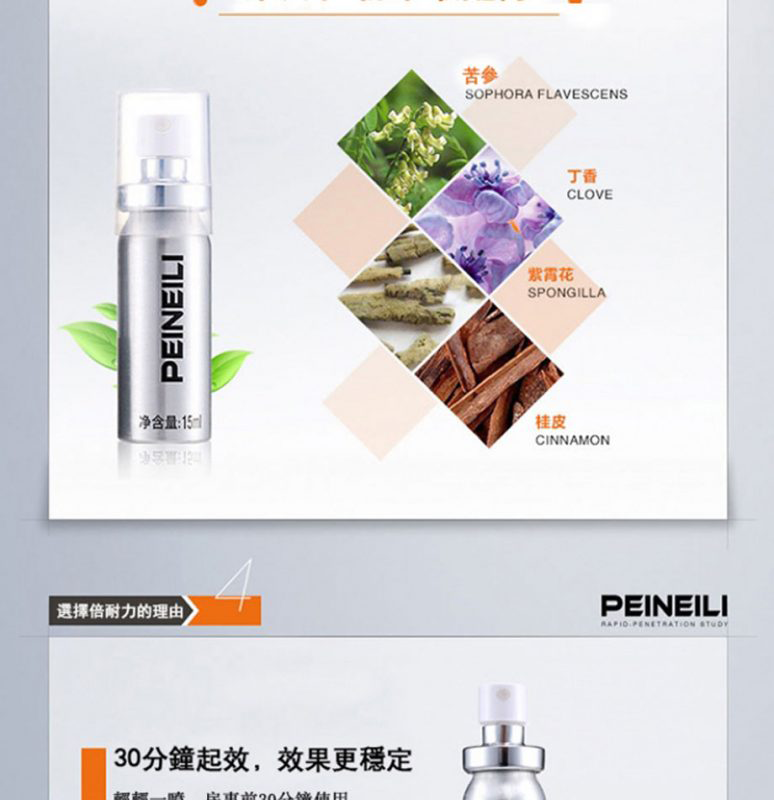 倍耐力持久液屬於成人用品,專為緩解男性在親密時遇到的時間短、不硬、不舉等問題而設計。該延時噴劑採用了天然草本提取物,如蛇床子、丁香、紫霄花和桂皮提取物,結合現代生物科技,能有效防止早瀉,改善男性體質,增強免疫功能。