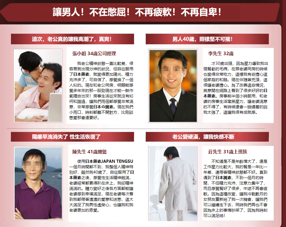 日本藤素是唯一的一種100%純天然,安全,有效的男性功能藥物,它可以解決男人性生活中的尷尬難題。隻有日本藤素可以帶給男性朋友更多的男性魅力,性能力,和性是快感,而且完全沒有任何健康風險,並且不需要醫生處方。這是因為日本藤素結合了天然成分和被臨床證明有效的濃度值,從而最大程度提高了您的性慾和性能力。