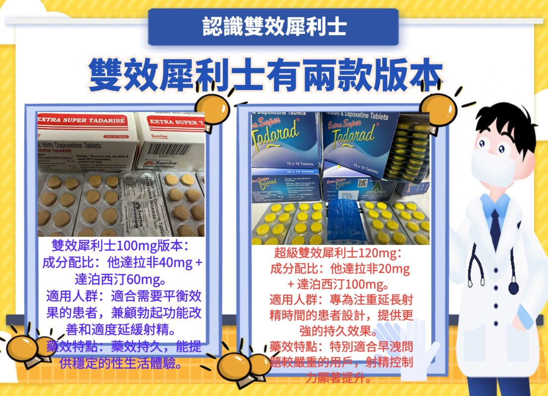 雙效犀利士(Super Tadarise)是一款結合了他達拉非(Tadalafil)助勃達泊西汀(Dapoxetine)早洩的藥物,專為同時治療勃起功能障礙(ED)和早洩(PE)設計。由於其強大的雙重效果,許多男性對此藥物需求高漲。然而,如何確保購買到正品雙效犀利士,成為一個重要的問題。