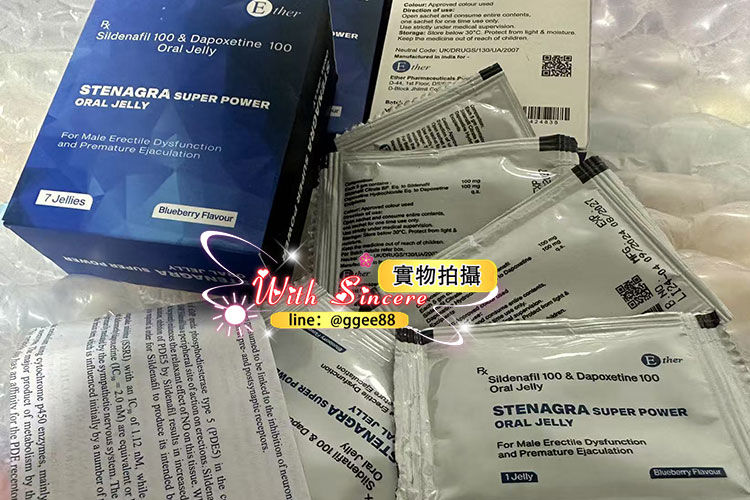 | 雙效藍鑽果凍 Stenagra Oral Jelly | 助勃 + 延時雙效(含 Sildenafil 100mg + Dapoxetine 100mg) 劑量加強版、藍莓口味 |