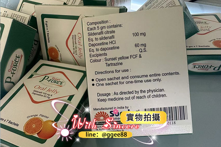 雙效果凍威而鋼Super P-Force Oral Jelly,又稱水果味威而鋼雙效,液體威而鋼雙效是壹種有效治療勃起功能障礙的藥物,刺激男性的自然性喚起。一次一包,提前30分鐘服用,效果有效持續4小時以上