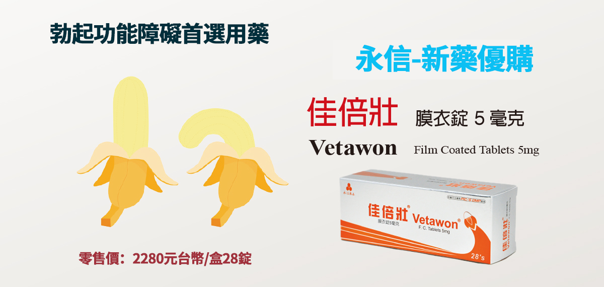 永信 Vetawon 佳倍壯 5mg 膜衣錠|犀利士學名藥 28粒/盒
