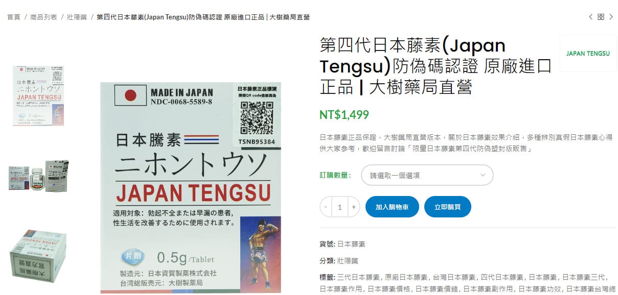 大家好!在大樹藥局,你可以輕鬆在線購買處方藥日本藤素。你隻需要使用網站上的訂購功能,選擇要購買的藤素商品並進入結賬,然後填寫收貨信息。我們的從業人員將在1個工作日內處理你的訂單。在線購買藤素相比臺灣當地藥店,最多可以節省60%的錢唷!